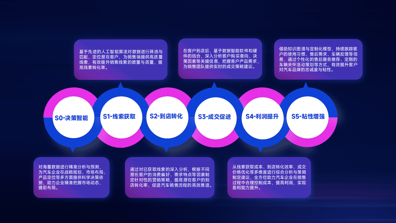 通过拓宽潜在客户来源、、、优化线索分配并提高到店转化率,,以增强销售效率。。同时,,,,利用线索数据不断优化分析模型,,,有效提升转化率,,,扩大营销影响力。。